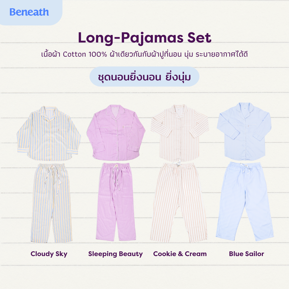 👕👖ชุดนอนเข้าเซ็ทเสื้อแขนยาว กับกางเกงขายาวที่น่ารักและนอนสบายมากกก จะใส่เข้าเซ็ทหรือ Mix & Match กับเสื้ออย่างอื่นก็ได้ตามคอนเซ็ปของ Beneath. และดีไซน์ชุดให้สามารถทำกิจกรรมข้างนอกได้ ใส่เดินห้าง หรือจะใส่ไปเที่ยวทะเลก็ได้หมด #ชุดนอนที่ไม่ได้เป็นแค่ชุดนอน 🫶🏻✨